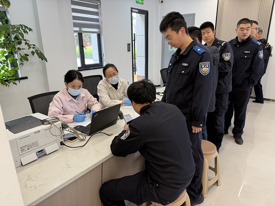“说不紧张是假的,从小打屁股针留下的阴影,看到针头我这心里就突突。”大洋交警中队辅警张王欢笑着坦言自己的小胆怯。