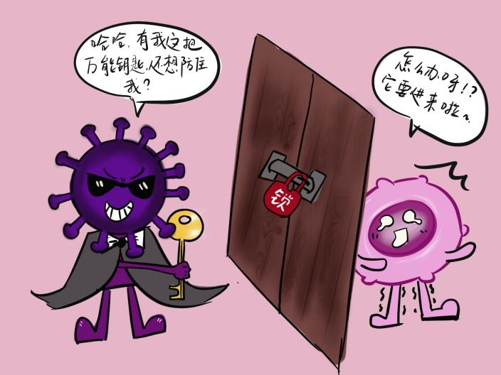 人类免疫缺陷病毒(HIV)一旦入侵人体,就像戴着墨镜穿着风衣的特工,直奔我们的“免疫系统指挥部”——CD4+T细胞(免疫系统的指挥官细胞)。它的外套(包膜)上藏着一把“万能钥匙”(gp120蛋白),能精准撬开指挥官细胞的锁(CD4受体),悄悄溜进去。更离谱的是,它还能不断变形,让免疫卫兵根本认不出来!