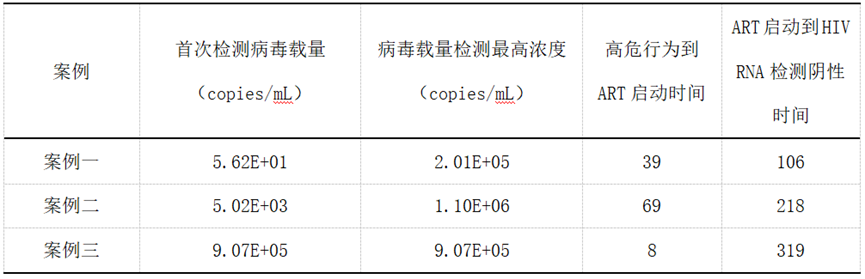 表 1 三例HIV感染后不同ART启动时间对HIV RNA检测影响