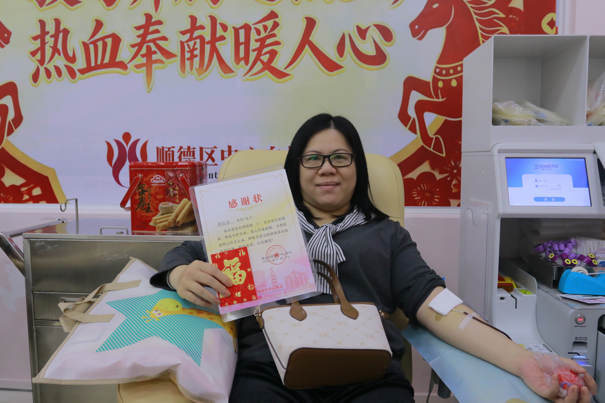 当天,共有49人成功献血,其中全血献血者28人,累计献血9800毫升;单采血小板献血者21人,共35个治疗量。马年新春,顺德市民以一臂之力传递温情年味,用点滴热血守护生命希望,让这份承载着健康与祝福的善行,在千家万户代代传承,让爱心之花在凤城大地绚烂绽放。