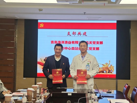 活动开始,张燕华、李继明陪同钟伟及支部党员参观血站供血部、机采部、成分部等业务科室以及科普基地、党建基地、廉政基地。参观结束后共同到四楼中会议室进行支部建设工作交流。张燕华介绍市中心血站目前主要工作和取得成绩及支部建设情况;钟伟介绍公司及支部建设情况。青岛海洋渔业有限公司成立于1949年,是建国初期成立的国有大型水产联合企业。公司机关党支部共有14位党员,以“政治引领、服务中枢、作风表率、融合发展” 为定位,获评2021年青岛市优秀党组织,打造“融化+”诚信先锋党建品牌,确保决策部署高效落地,是坚强战斗堡垒。随后党员们进行了热烈、充分的业务交流讨论,对双方的工作有了更深的了解,收获颇丰。为进一步加强支部建设,充分发挥党建引领作用,促进双方业务协同、资源共享、服务群众等方面的深度合作,双方代表签订党建共建协议。会后,青岛海洋渔业有限公司机关党支部组织党员参加无偿献血,经体检、征询,有2位党员符合献血条件,共计献血600毫升。