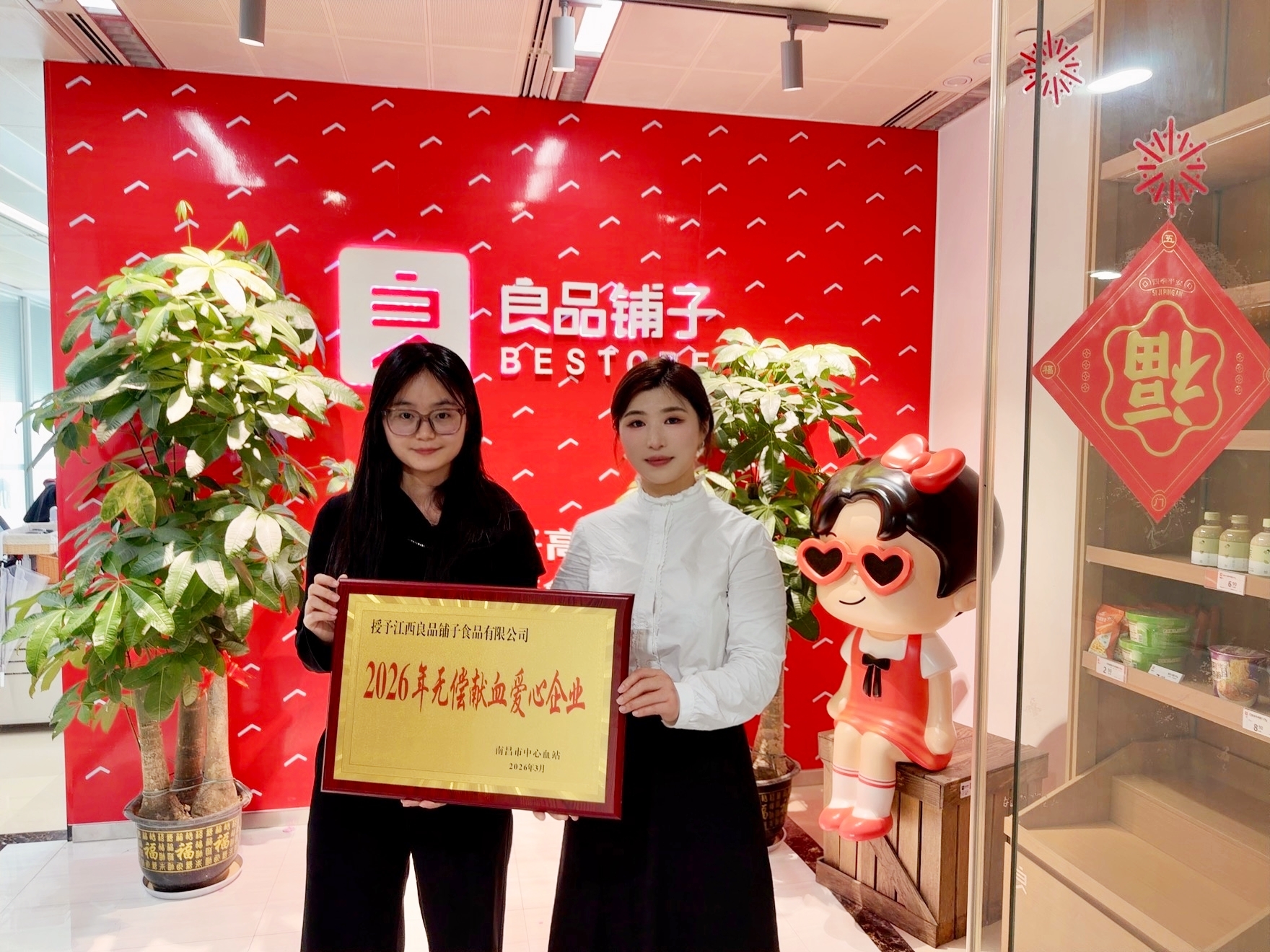 为表彰企业积极践行社会责任、支持无偿献血事业,南昌市中心血站为还特意为江西良品铺子食品有限公司颁发无偿献血爱心企业奖牌。