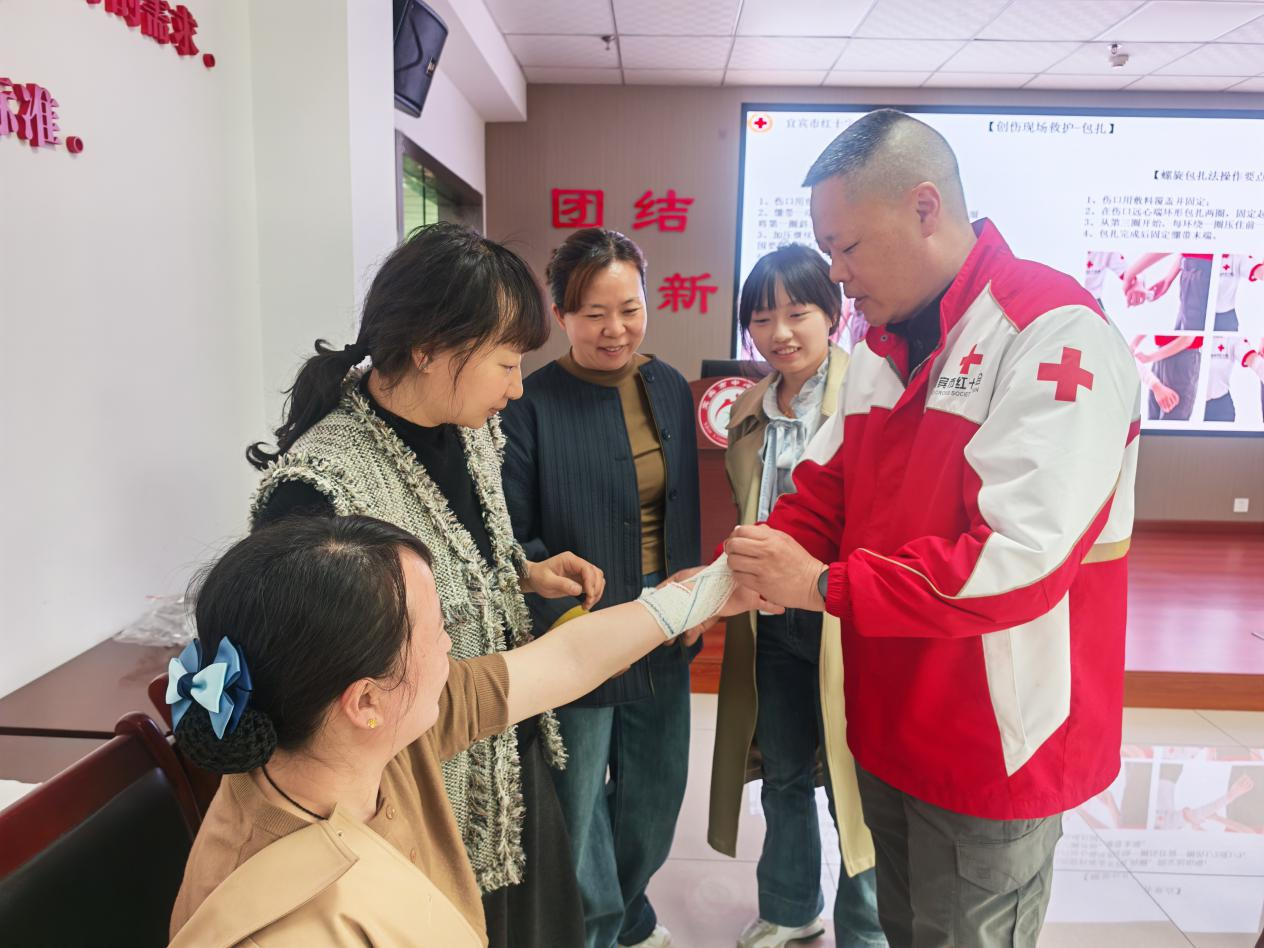 随后的现场操作环节,在钟队长的亲自示范和手把手指导下,参训人员两人一组,利用绷带、三角巾等急救器材,针对头部、手臂、腿部等不同部位的创伤包扎进行了反复练习。钟队长一边耐心纠正动作,一边详细解答疑问,确保每一位参训者都能准确掌握环形包扎、螺旋包扎、八字包扎以及三角巾使用等关键技能。