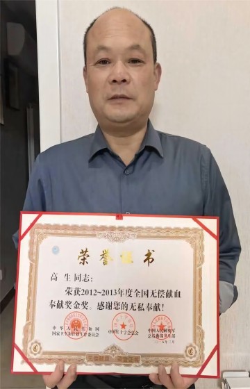 截至目前,他累计捐献35800毫升血液。自1999年起,他先后荣获国家级无偿献血奉献奖铜奖一次、银奖一次、金奖三次及全国无偿献血奉献奖终身荣誉奖。