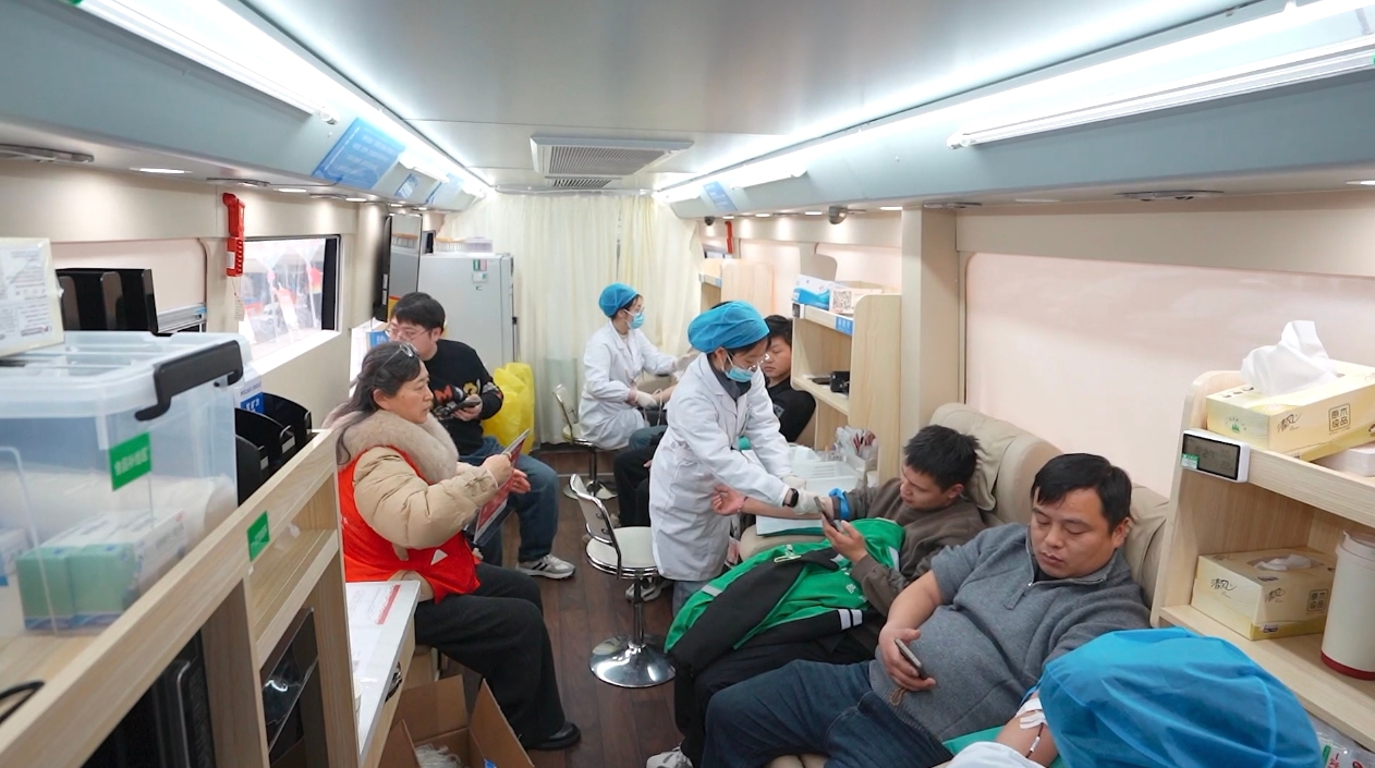 献血活动从早晨6:50开始,一直持续到傍晚,一位位“小哥”骑着电驴,顶见冒雨,步履匆匆走向献血小屋和广场上的流动采血车。橙色的是淘宝,红色的是京东、绿色的是叮咚、有红有灰还有黑的是顺丰。“我高血压能不能献”、“前几天打了疫苗能不献”、“我这么胖能不能献”?“谢谢”、“向您致敬”、“您是英雄”!献血小屋和采血车内一片欢声笑语。春天未到,春意已浓!登记、验血、脱下外套、捋起衣袖、插入针管,“小哥”们的血液在输液管中流淌,“小哥”们的大爱将走向四方。晚上5:20,疲累的医务人员送走了最后一位“小哥”,清点爱心,当天共来了106位爱心“小哥”,除12位因高血压、感冒不适合献血外,94位成功献血。