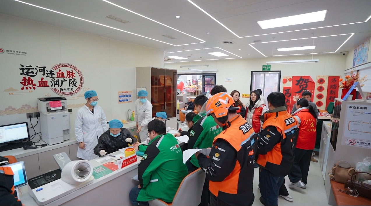 3月17日,扬州市工人文化宫,2026年苏工暖“新”—“8 + X”综合服务集市活动在蒙蒙细雨中如期举行。活动包括为新业态劳动者提供免费体检、免费办理健康证,发布2026年扬工暖“新”2条服务清单及工会爱心餐项目,向快递员代表赠送苏工暖新爱心礼包等。其中一项活动——“小哥”献血的效果让人意想不到。