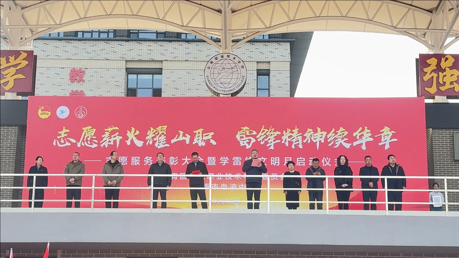 3月11日,山西职业技术学院2026年学雷锋文明月正式启动,献血车同步开进校园。本次活动以“志愿薪火耀山职,雷锋精神续华章”为主题,现场为2025年度优秀志愿者团队及个人进行表彰。
