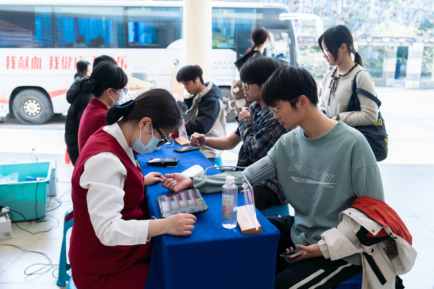 献血队伍中,教职工以身作则、带头奉献,青年学子怀揣热忱、主动参与,既有多次献血的“热血老兵”,也有略带紧张却坚定伸出臂膀的“新生力量”。国艺学院在外实习的学生特意请假赶回学校,主动加入献血行列。他说道:“能以微薄之力为生命续航,我觉得特别光荣。”