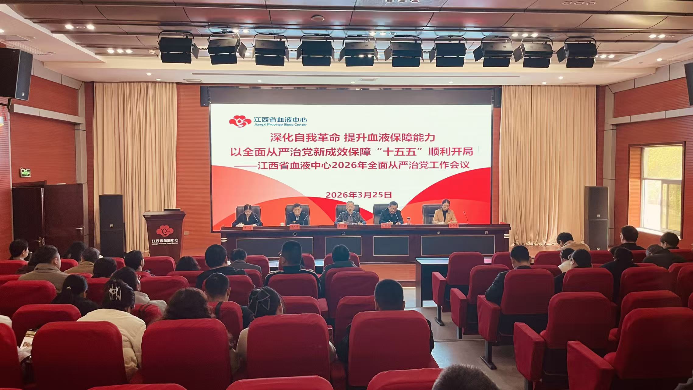 3月25日,江西省血液中心召开2026年全面从严治党工作会议,党委书记、副主任萧锘作全面从严治党工作报告,党委副书记、主任范为民主持会议并传达学习了习近平总书记在全国政协农工党、九三学社、医药卫生界、社会福利和社会保障界联组会上的重要讲话精神、2026年度全省卫生健康行业党的建设和全面从严治党暨医德医风建设工作会议精神,党委委员、副主任黄会青传达学习了二十届中央纪委五次全会、省纪委十五届六次全会精神,班子成员徐思平、吴芬出席。