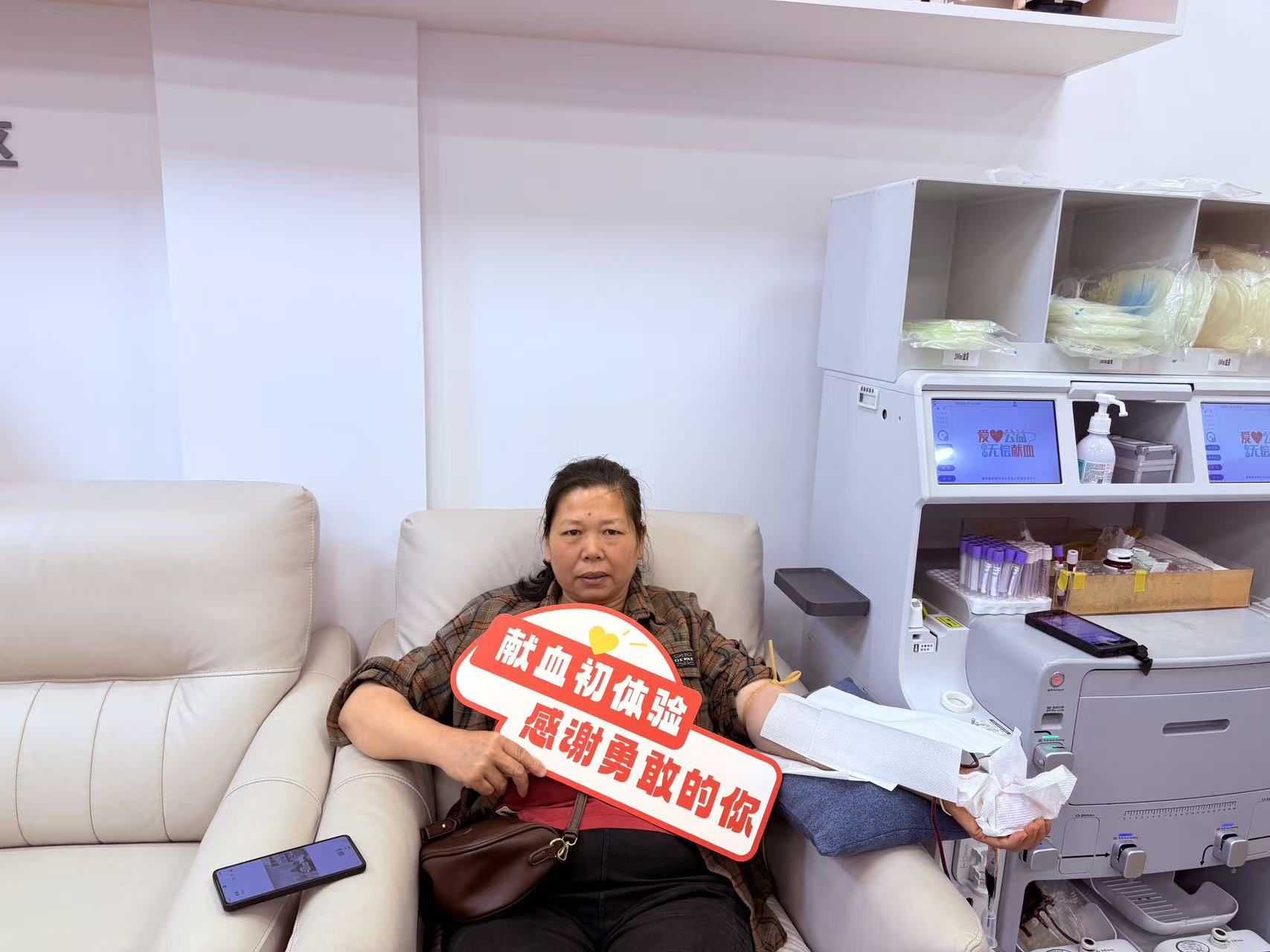 “很早就想来献血了,但心里一直有点害怕。”奚美萍坦言。今天,在朋友的鼓励下,她终于鼓起勇气迈出了这一步。现场工作人员耐心为她讲解献血知识、细致开展健康体检、核对信息,并全程贴心安抚情绪,缓解她的紧张感。在专业规范的操作下,奚美萍顺利完成捐献。献血过程中,她特意嘱托工作人员帮忙拍照,想要分享给女儿,传递这份温暖正能量,言语间满是自豪。
