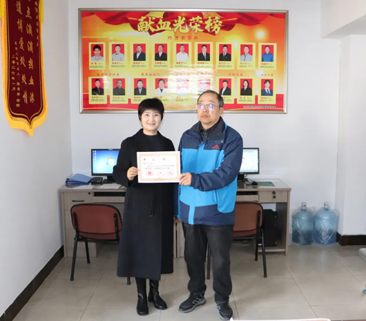 爱心奔赴,共享殊荣。近日,张定军陪爱人鞠小芳一起来到咸阳市中心血站献血办领取了2022-2023年度全国无偿献血奉献奖铜奖。