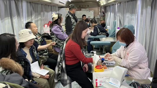 早春的清晨略带寒意,退役军人们的奉献热情高涨。活动现场,在工作人员的引导下,前来献血的退役军人有序填写登记表、接受健康征询、进行血液初筛。他们之中,有连续多年参与无偿献血活动的“老面孔”,也有首次参与献血活动的“新力量”。“军人的天职,就是保家卫国,退役后还能以献血的方式贡献自己的力量,守护群众的健康,我感到无比光荣!”一位正在献血的退役军人说。