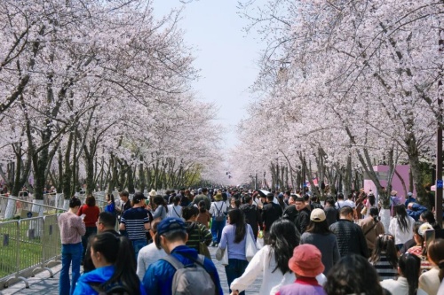 与此同时,扬州的春日限定浪漫已悄然开启。樱花大道上人潮涌动,粉白花瓣如云似雪,整条街道被晕染成一片梦幻花海。慕名而来的市民与游客纷纷驻足留影,将这份春日美好定格成永恒。