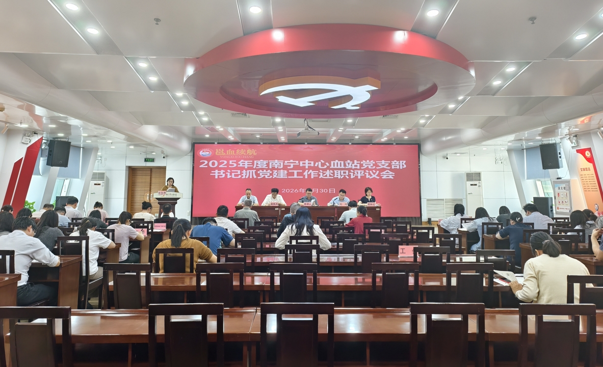 为进一步压紧压实党支部书记抓基层党建工作责任,2026年3月30日,南宁中心血站召开2025年度党支部书记抓党建工作述职评议会,站领导班子成员、各党支部书记、党支部委员、干部代表、党员代表、群众代表共35人参加会议。