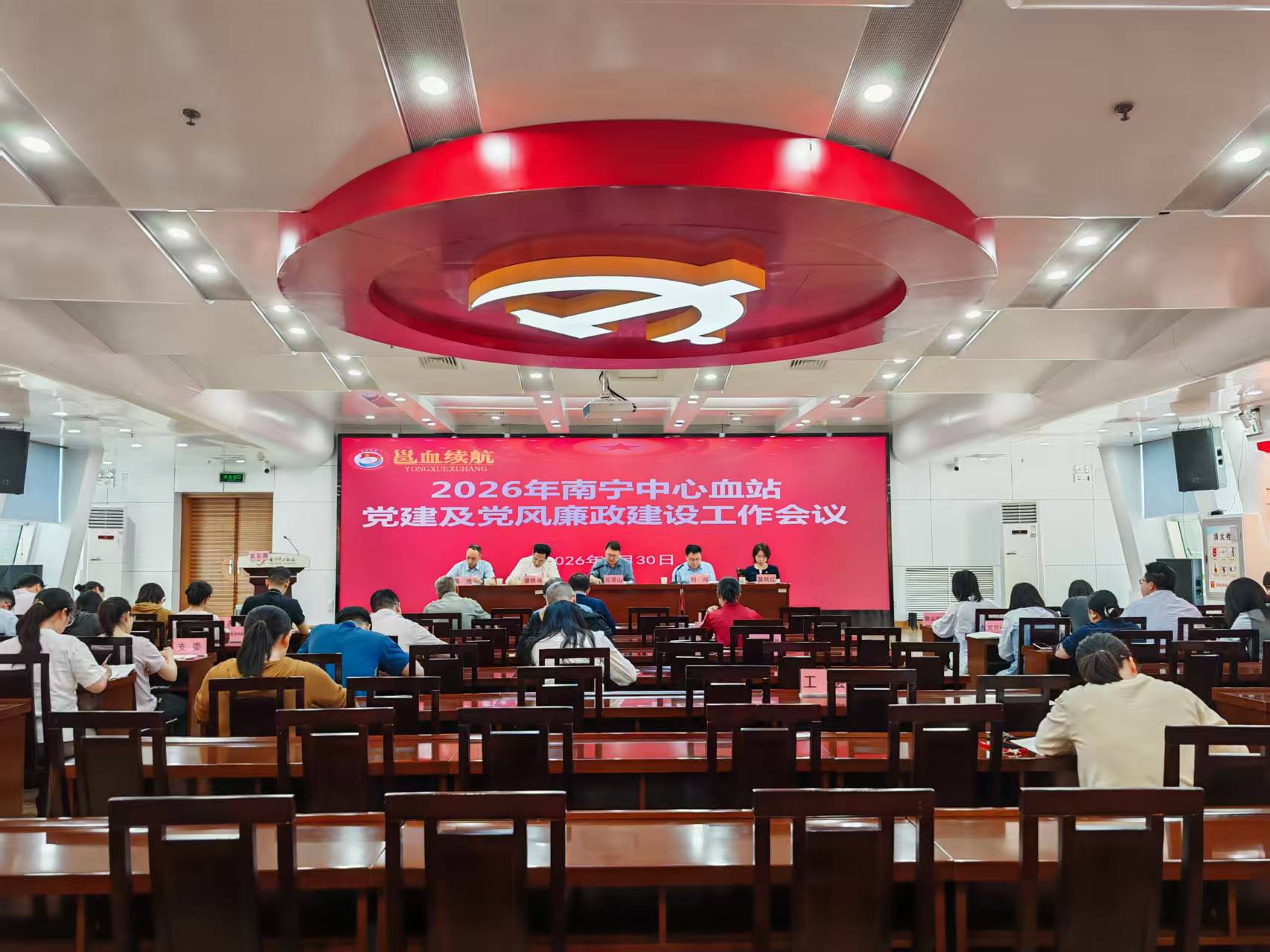 2026年3月30日,南宁中心血站召开2026年党建及党风廉政建设工作会议,全面总结2025年工作成效,部署2026年重点任务,以高质量党建引领采供血事业高质量发展。站领导班子、党支部书记、科室负责人、党员代表及群众代表参会。