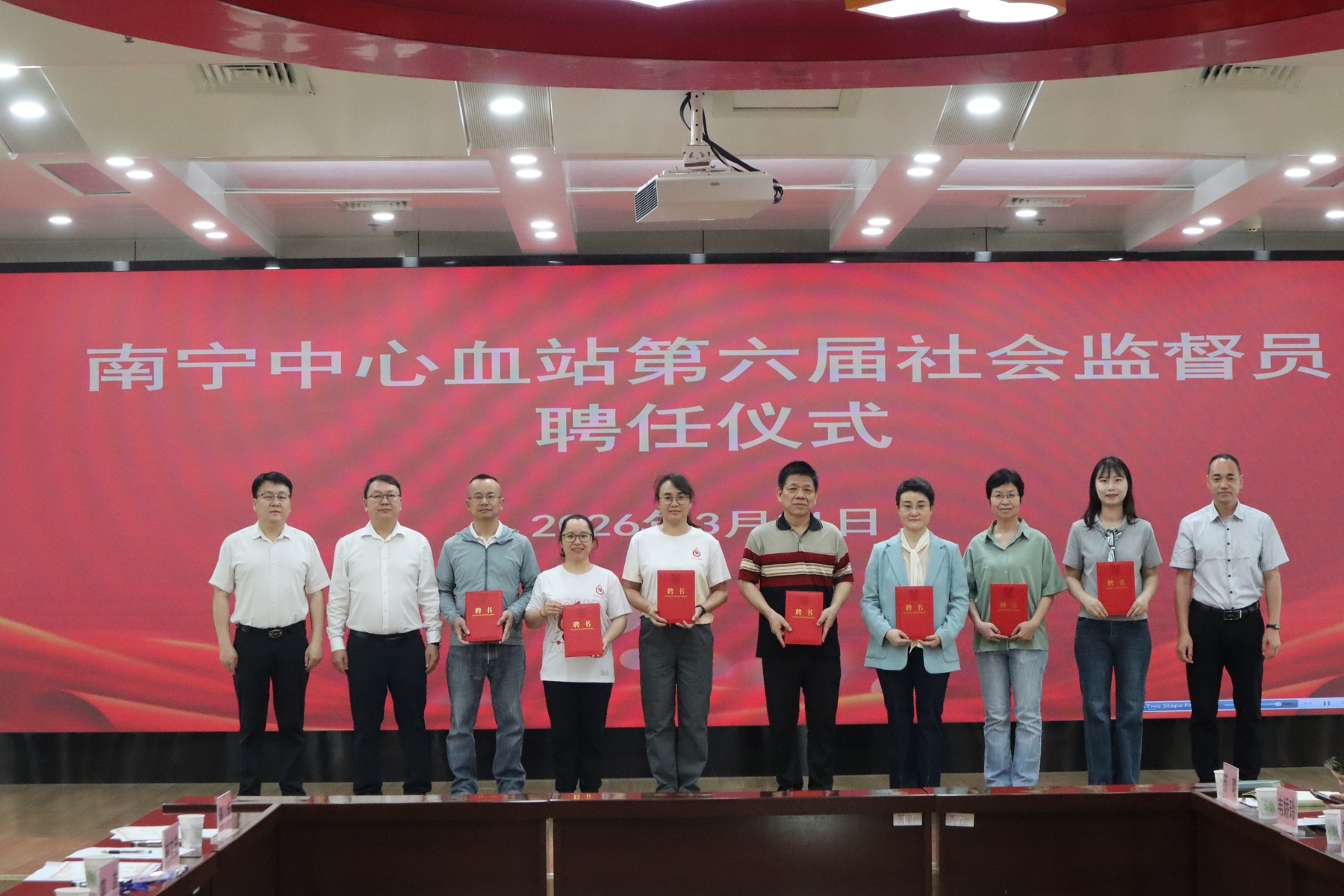 为进一步健全社会监督机制,提升采供血服务质量与效能,切实增强献血者满意度和获得感,3月31日,南宁中心血站举行第六届社会监督员聘任仪式暨首次监督工作座谈会。会议由党委副书记、纪委书记刘闯主持,党委书记、站长苏常山,分管业务副站长陈悦,各相关科室负责人及新聘任社会监督员共20人齐聚一堂,共商发展良策,共筑廉洁与用血安全防线。