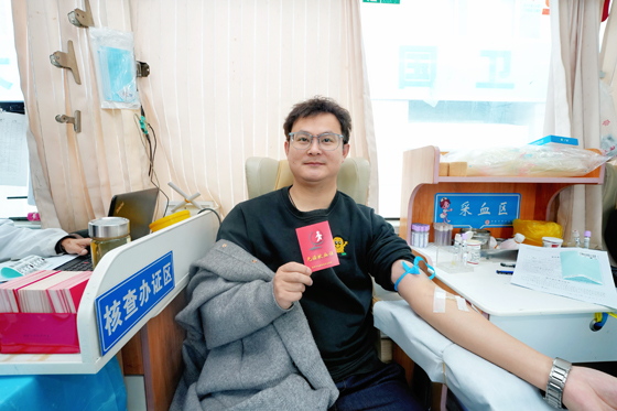 盛国涛此次完成了他人生中的第八次无偿献血。“作为一名卫健人,参与献血既是不可推卸的责任,更是一份光荣的使命。”他笑着说道,“能用自己的血液为他人续写生命篇章,是一件非常有意义、有价值的事,我会一直坚持下去。”