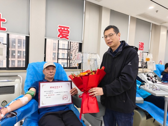 “今天既是我的生日,也是我最后一次献血,心里特别激动,也很不舍。”何平资说,“献血这么多年,我最大的感受就是精神上的满足和自豪,想到自己献出的血能挽救别人的生命,帮一个家庭渡过难关,就觉得我的坚持特别有意义。”
