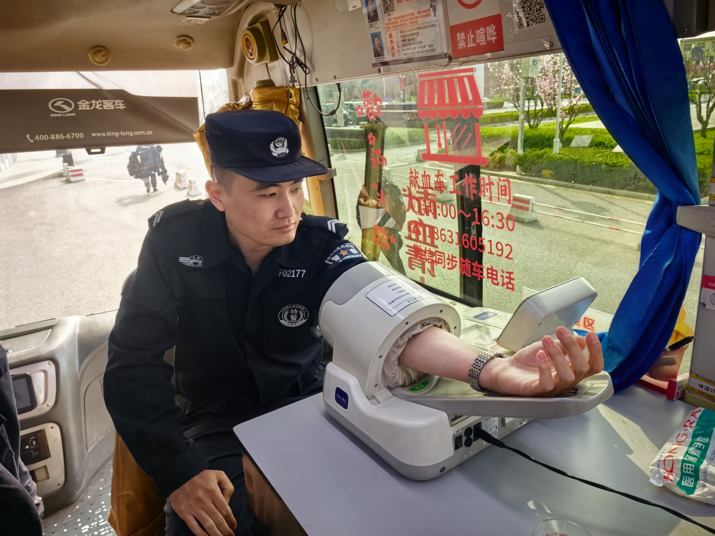 活动现场,在献血车前,公安局各部门人员整齐列队,精神抖擞、英姿飒爽,他们身着作训服,身姿挺拔,眼神坚定,成为春日里最动人的风景线。从队伍集结到有序献血,全程井然有序,充分展现了公安局队伍过硬的纪律作风和良好的精神风貌。