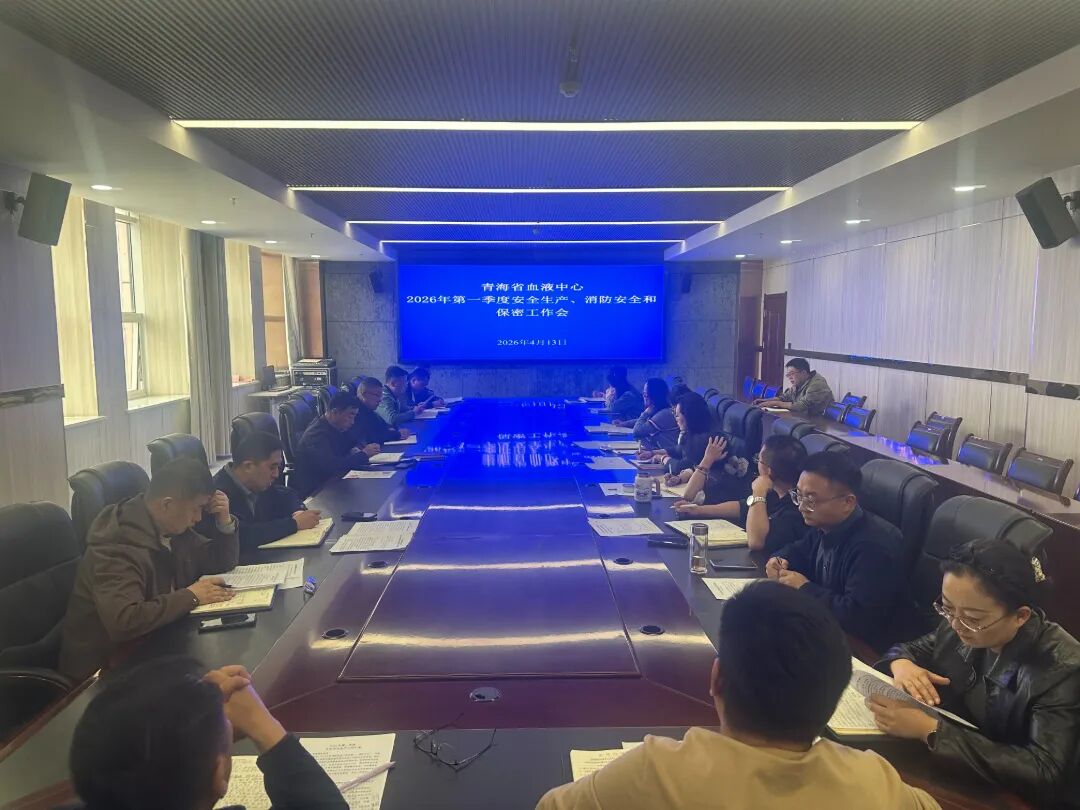 4月13日,青海省血液中心召开2026年第一季度安全生产、消防安全和保密工作会,各科室紧密结合第一季度安全生产、消防安全、建筑物安全、特种设备、冷链运输、车辆安全、信访保密、网络、病原微生物实验室管理和生物安全等工作开展情况和安全形势进行了发言分析,并明确了下一步工作重点。