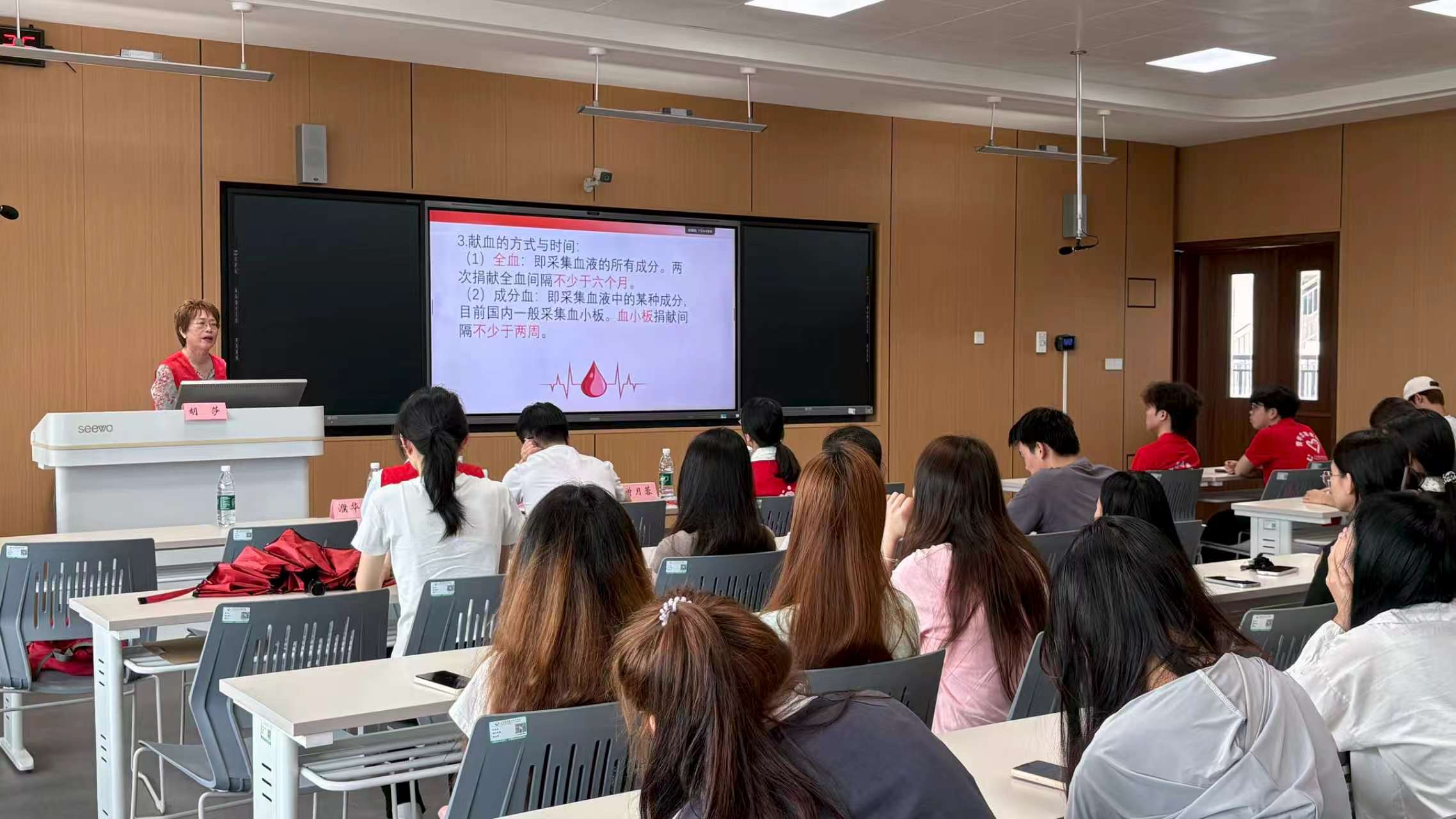 在授课环节,协会讲师濮华斌、胡莎两位老师结合自身多年参与无偿献血及志愿服务的经历,结合“为什么要开展无偿献血”以及“如何消除公众对献血的常见误区”等理念和知识的引入,围绕血液知识、无偿献血相关政策、志愿服务内容、志愿服务激励、志愿服务要求等方面进行了深入浅出的讲解。讲师通过生动的PPT演示、真实感人的救助案例以及趣味互动问答,将专业的血液生理知识转化为通俗易懂的语言,将明确的志愿服务标准转化为细致全面的服务指引,赢得了同学们的阵阵掌声。
