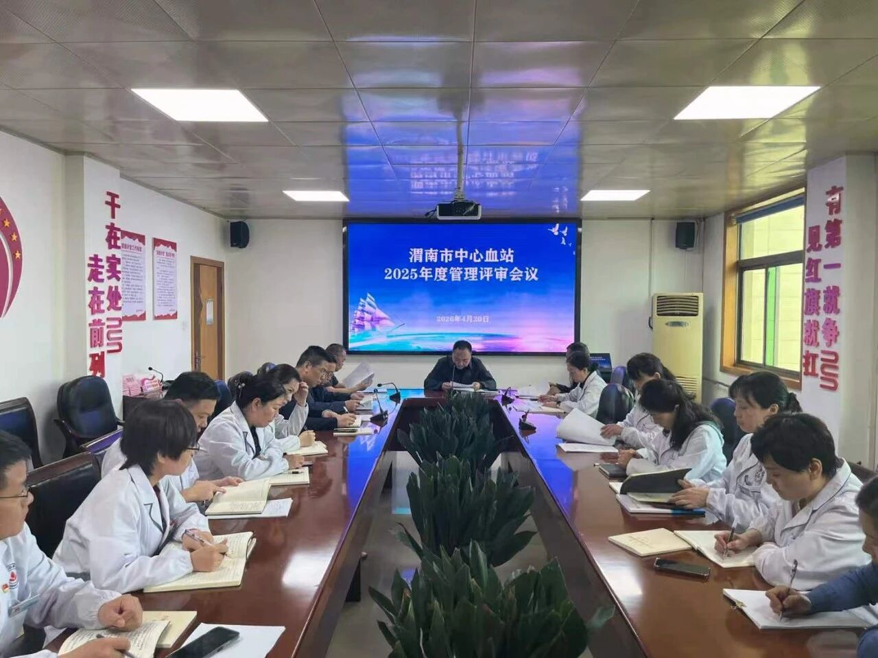 为全面复盘采供血全流程工作成效,精准核验质量管理体系运行适宜性、充分性与有效性,4月20日上午,渭南市中心血站组织召开了2025年度管理评审会议。会议由站长严胜利主持,站领导班子成员及各科室科长参加。