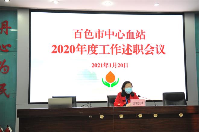 1月20日上午,白色市中心血站在站内多媒体教室召开2020年度工作述职会议。市中心血站党支部书记、站长梁朦尹及部分职工参加会议。