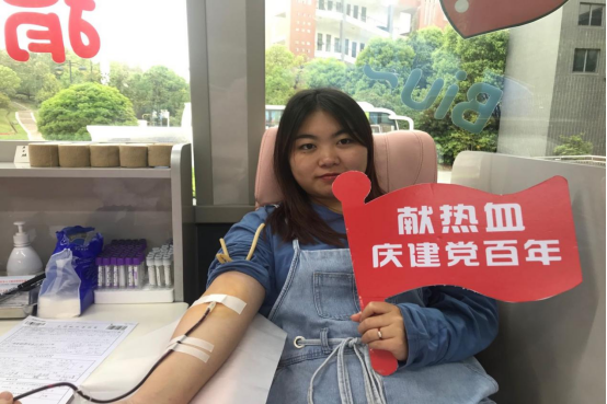“去年学校组织无偿献血活动时我就想参加献血,但B型血停采没能成功捐献,所以我又来了。”杨思思同学第一个登车献血,她说:“今年是中国共产党成立一百周年,我能够用献血的方式为党献礼,感觉特别自豪和荣耀。”