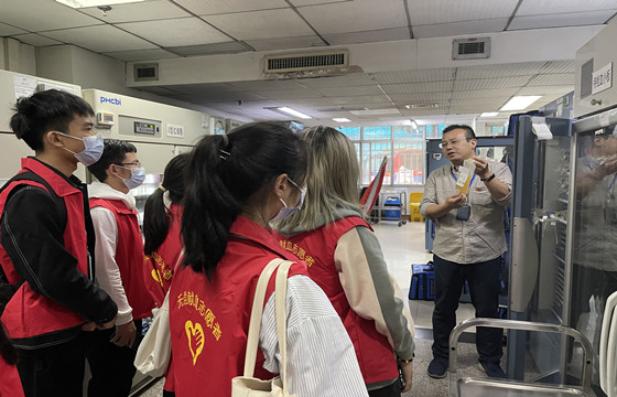 听完血液知识讲座后,22名志愿者们开始了血液探秘之旅。他们跟随顾军老师的步伐,来到了成分制备科、供血科,实地了解了血液从采集、检验到分离制备、储存发放等流程。作为这次活动的组织者、学院青协企划部部长唐梓鑫表示,“献完血后,我们都挺想知道自己献的血去哪儿了,今天算是如愿了。”