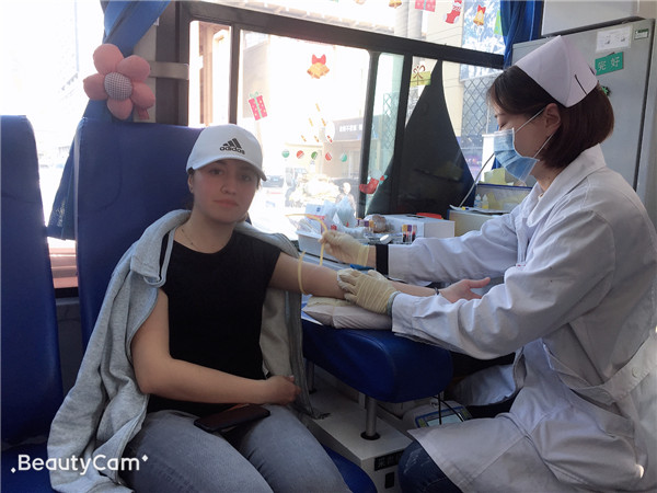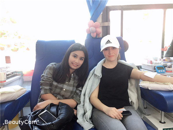 2019年4月1日,阳光明媚的午后,江苏省血液中心位于江宁义乌小商品城的献血车上迎来了一群笑容灿烂的年轻人。他们是来自于江苏经贸学院的留学生,有来自于哈萨克斯坦的,吉尔吉斯斯坦的,乌兹别克斯坦的......虽然国籍不同,但是善良的心却都是一样的。这位哈萨克斯坦小伙林力已经不是第一次来献血了,而这回也是他第三次带上他的同学们一起来无偿献血。刚好经贸学院的志愿者朱璐莹同学在做志愿服务,她的热情陪伴让这群有爱心的外国友人感受到校友志愿者别样的温暖。几位留学生也非常的勇敢,在献血的过程中非常配合。虽然大家来自于不同的国家,语言交流上也存在一定的困难。但是,只要我们都拥有爱,感恩的心,那么再遥远的距离都无法阻止我们相互靠近的心。我们拥有相同的热血,都愿意为这个世界奉献自己的微薄之力。一如无偿献血事业,总有星火,渐渐燎原。