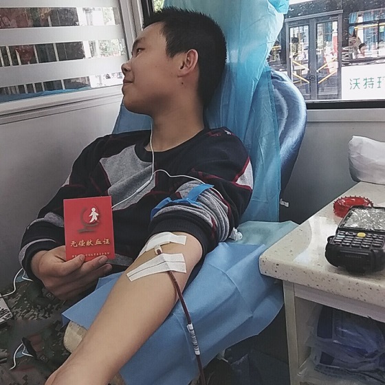 “献血对我来说是一件非常有意义的事情,我觉得献血很伟大。”这名脸上稚气尚未褪去的大男孩叫黄克政,是一名正在北湖区武装部服役的人民子弟兵,今天正好利用休假的时间来参与无偿献血。黄克政表示,自己一直以来都想参与无偿献血,在经历过部队训练后,不仅强健了体魄,还加强了为人民服务的思想,刚过了18岁生日的他又恰逢休假,便想参与到这项公益事业当中。