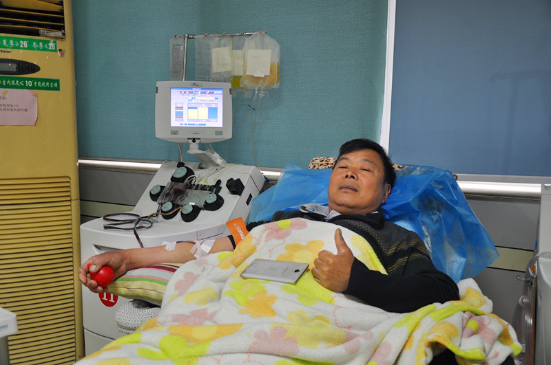 和善的面庞,爽朗的笑容,是陈少敏给人的第一印象。13年献血118次,3次荣获全国无偿献血奉献奖金奖。在九江,陈少敏是名副其实的献血牛人。随着《献血者健康体检标准》修改,他的成分献血频率增加到半月一次。8时30分,体检完毕,合乎要求,陈少敏坐到采血机旁。1小时后,2个治疗单位的血小板从他体内顺利采出。