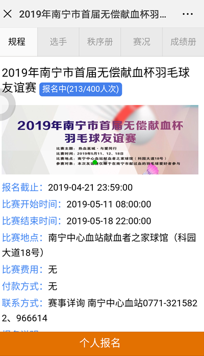 “你报名了吗?”“你报了哪个比赛项目?”“混双,缺一女队友,求组队。”……由南宁市卫生健康委员会、广西首府南宁献血委员会办公室主办,南宁中心血站、南宁市羽毛球协会承办的南宁市举办首届无偿献血杯羽毛球友谊赛正式开始报名,南宁市各献血者群在热烈讨论。