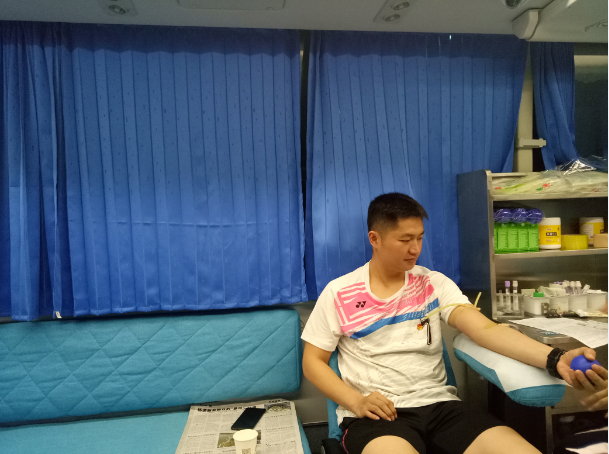 图为校团委书记文学在献血