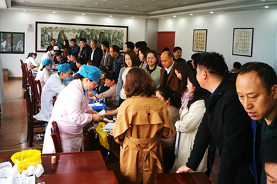 虽然今天的气温陡降,却并未阻却广大干群的献血热情。早晨7∶00,献血者就已经有序地排起长队,依次进行信息登记、体检、化验等环节。在等待献血期间,有些参加过多次献血活动的同志,主动给需要帮助的人提供帮助。整个活动现场的人,都带着微笑。不论是献血者还是医务工作者,他们都在用自己的实际行动,传递着爱与感动。