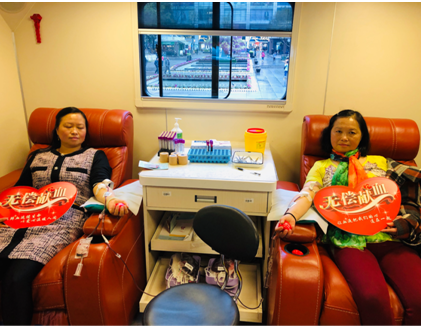 一大早,江北新世纪献血方舱迎来了一对姐妹花,她们是史云芬和史云霞姐妹俩。她们是相约献血,姐妹俩笑呵呵的说:“不管刮风下雨每半年都会来献血的。”