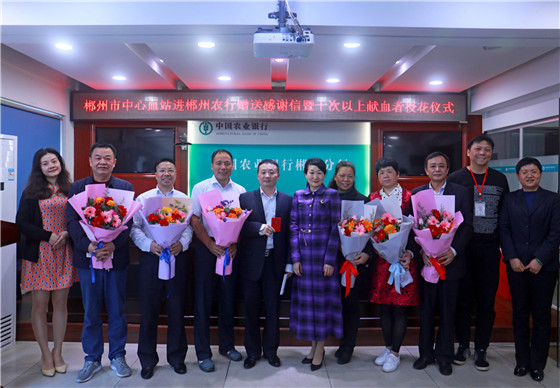 通讯员(曹怡霏)4月17日上午,湖南省郴州市中心血站走进农行郴州分行,开展了进郴州农行赠送感谢信暨十次以上献血者授花活动,感谢农行郴州分行及其广大干部职工多年来对郴州无偿献血工作的大力支持和积极参与。