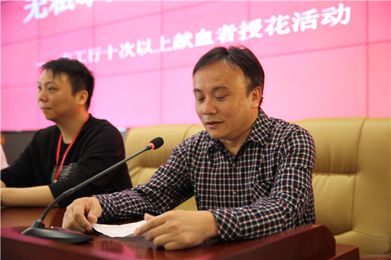 随后,献血者代表曹益林向大家分享了他的无偿献血经历:“早在十多年前,我就已经有了献血的想法,但是当时了解少,心理上总觉得献血对身体有影响,于是向医生咨询了一些献血知识,同时看到一些身边的同事经常参加无偿献血,就克服了畏惧心理,走上了采血车。”