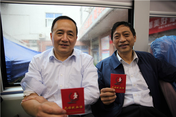 (献血者丁健(左)和刘照平)