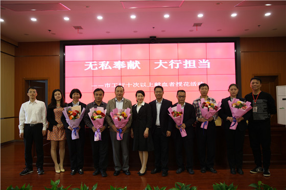 通讯员(李智宏)4月18日上午,郴州市中心血站走进中国工商银行郴州分行赠送感谢信,并为十次以上献血者授花,感谢市工行多年来对无偿献血工作的支持。