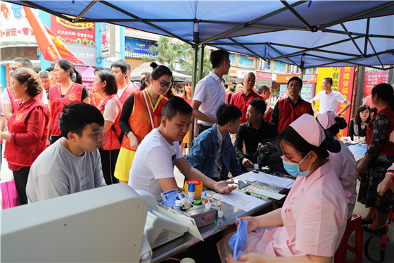 当天下午3点,郴州市维尼亚KTV店长文辉带领公司员工准时来到兴隆步行街献血屋。“我们店在人人乐购物广场,旁边就有一台固定停放的献血车,平时经过也会留意车外的献血宣传。”文辉说,他早就有过组织员工集体参加社会公益活动的想法,前段时间忙着门店装修的事就一直在推迟计划,恰好近期郴州市中心血站进市城区各企事业团体宣传无偿献血,联系到他后便毫不犹豫地决定了开展无偿献血活动。