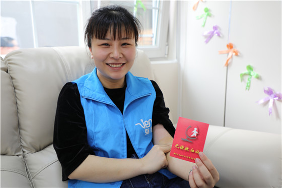 据了解,因为工作性质,KTV员工们都是下午6点半开始上班,一直到第二天凌晨2点。为了让员工们能体检合格参加献血,文辉还特地安排了员工调休,保证献血前睡眠充足、饮食合理。经统计,郴州市维尼亚KTV当天共有21人成功参加无偿献血,郴州市中心血站副站长史艾娟在活动现场为该企业授旗,感谢维尼亚KTV及其员工热心献血公益。