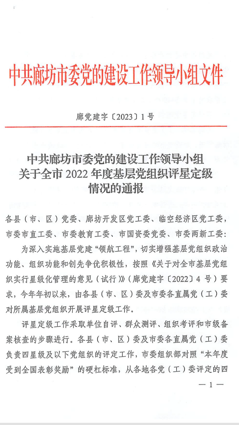 近日,中共廊坊市委党的建设工作领导小组发布《关于全市2022年度基础党组织评星定级情况的通报》,廊坊市中心血站党支部荣获“全市五星级基层党组织”荣誉称号。