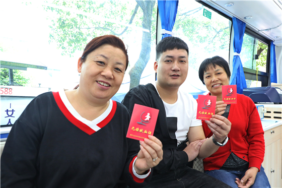 (献血者周余位(中)和他的妻子何爱、弟弟周成)
