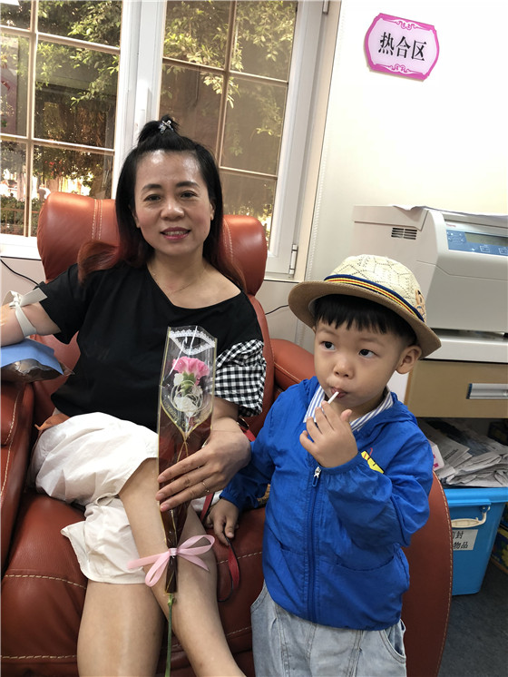 5月12日一早,家住海口的石梅香和丈夫带着两岁的孙子来到明珠献血屋奉献爱心。“今天是母亲节,以前看到新闻,有产妇因为大出血危及生命,做母亲真的很不容易。如果有人需要我的血救命,我一定义不容辞。希望我能够做我孙子的榜样,让他长大后也能做一个乐于助人的善良人。”多次献血的石梅香笑着说道。