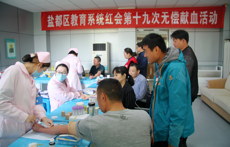 殷殷热血传递生命希望,款款真情汇聚人道力量。多年来,盐都区教育局重视推进无偿献血工作,把开展无偿献血工作作为增强教师公益意识、 奉献社会的重要抓手。自2000年以来连续19年组织教师集体无偿献血,10542人参加无偿献血,累计献血量达272万毫升,用实际行动展现新时代人民教师的责任与担当。其中有多人受到全国表彰,在全市已产生了广泛的影响,成为我市推进无偿献血工作的一大品牌。