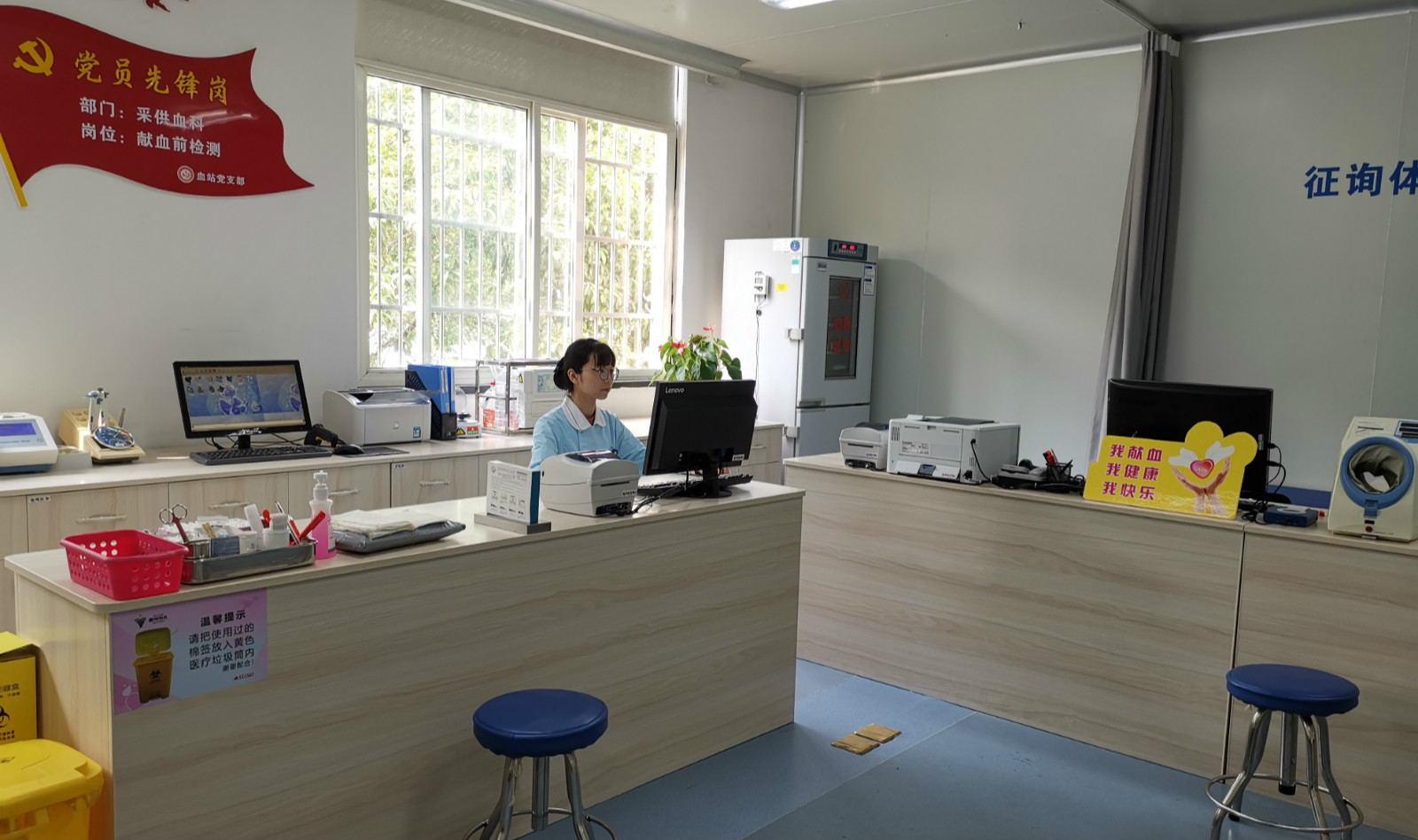 硬件一流,宽敞整洁有序的采血大厅