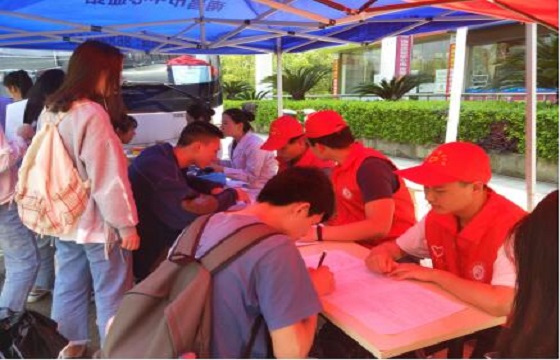 立夏以后,天气逐渐变热,同学们陪伴着南昌市中心血站员工在太阳底下招募、宣传。他们的行为不仅发扬了五四精神,更展现了同学们敢于奉献的当代主人翁意识。