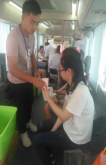 校区的志愿者们也协助血站工作人员搭棚子,摆桌子。他们即是献血者又是志愿者,在献血的同时,还将无偿献血知识传播给更多人,让更多人了解献血,加入献血招募的队伍中,成为公益事业上的一份子,奉献爱与责任。献血是生命的传递和延续。为了让更多需要输血的患者获得生的希望,为了多为社会做出一点功献,帮助更多的病人,枫林学子们纷纷撸袖献血,此次共计有70位同学献血,献血血量为20000多毫升。