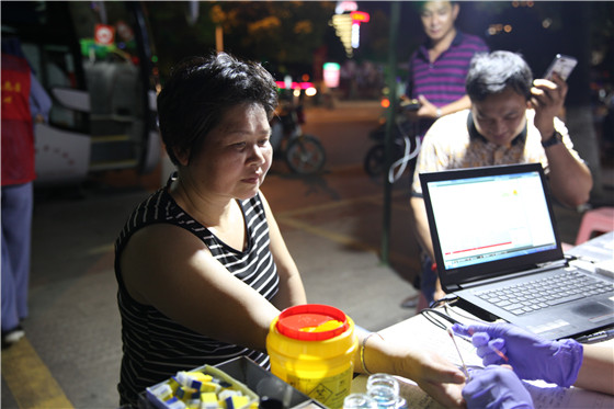 (献血者贺小红做血液初筛)